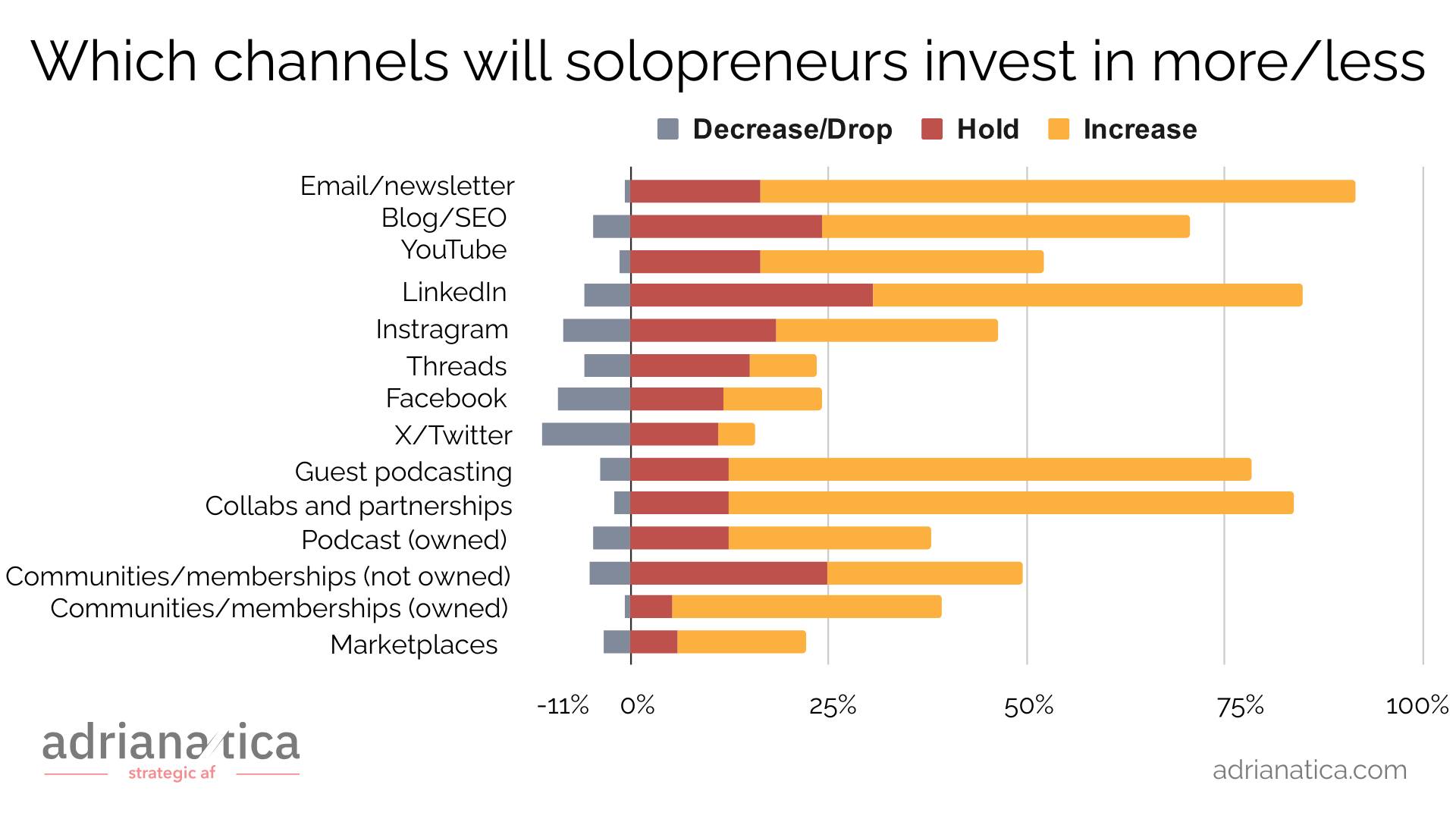 For instance, most solopreneurs in the State of Solopreneurship report said that the bulk of their business came from LinkedIn.
